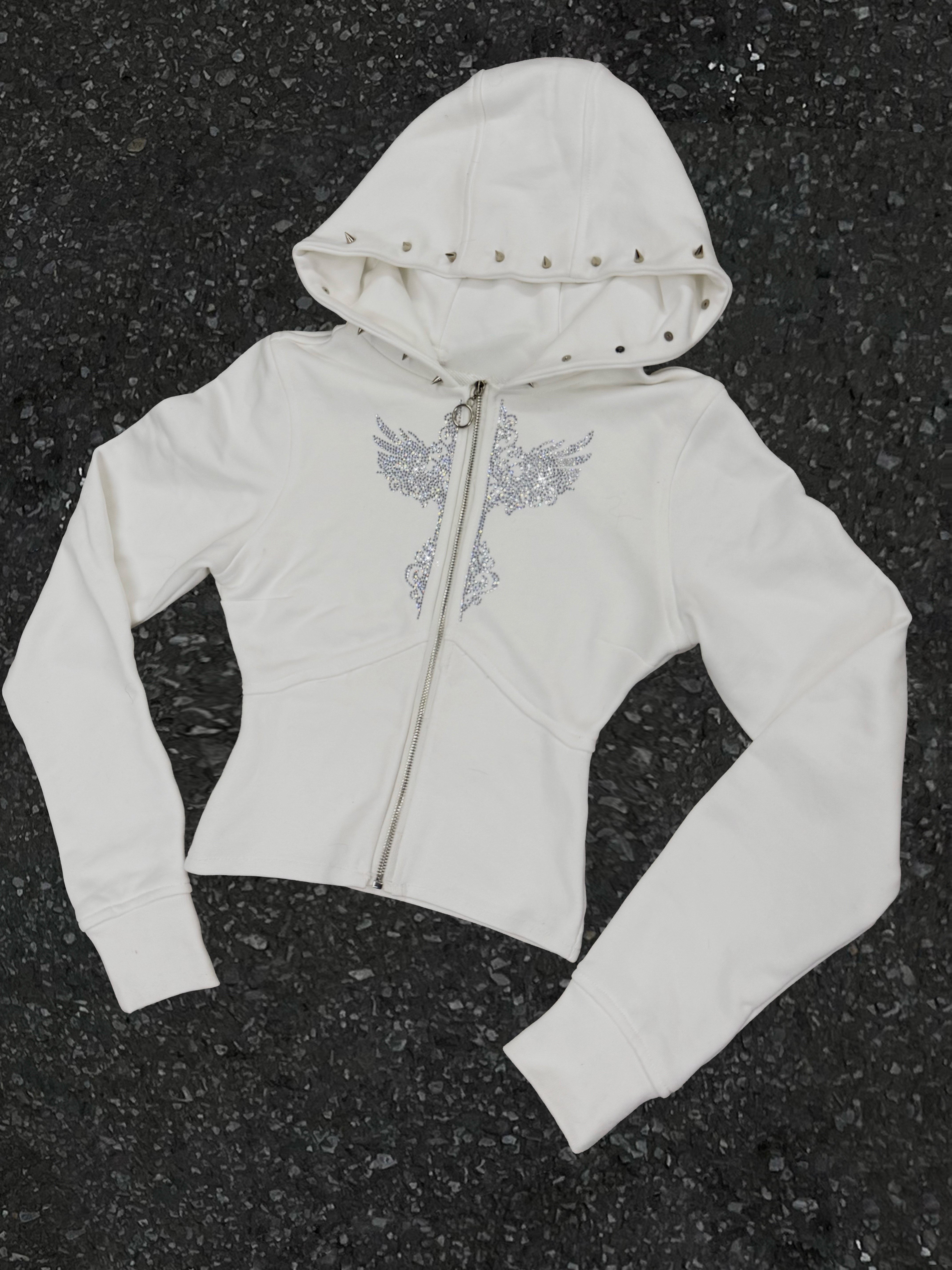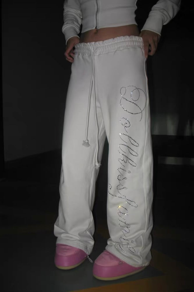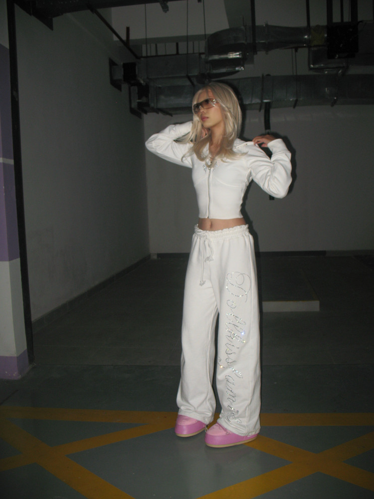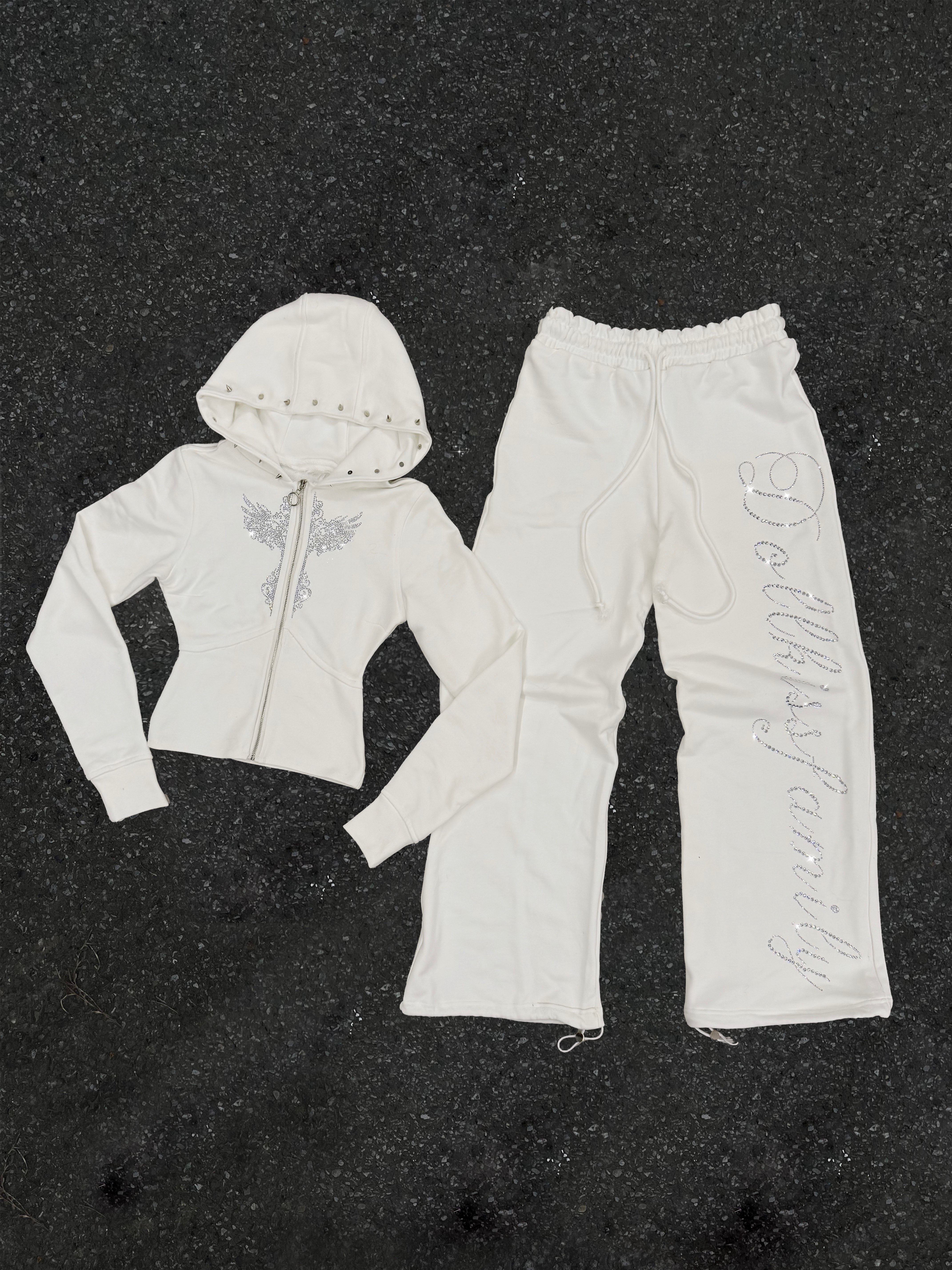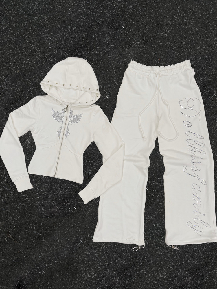 White hot diamond rivet tight sweatshirt and sweatpants set